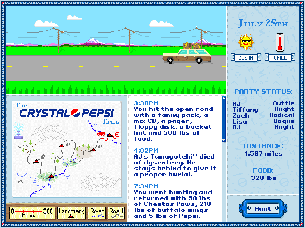 How do you celebrate Millennial fans that would do anything to bring back Crystal Pepsi? Make them play the most formative computer game of their youth: The Oregon Trail. Our 90s-flavored reinterpretation of the game was designed and coded in-house and includes contributions by iconic brands from JNCO jeans to Tamagotchi and even Double Dare’s Marc Summers to as our trusty trail guide. Millennials played the game for 8 mins on average for a chance to win a six-pack of the newly re-released Crystal Pepsi. You can still play it here.